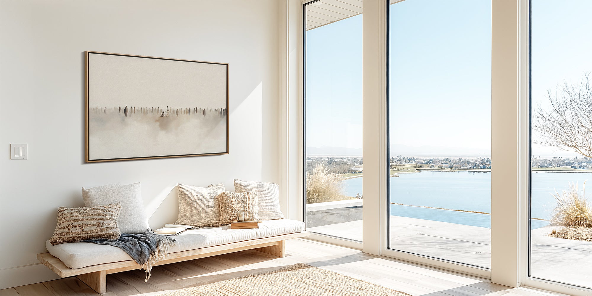 Jesus Teaching the Multitudes – Sermon on the Mount Large Framed Canvas – Minimalist Christian Art