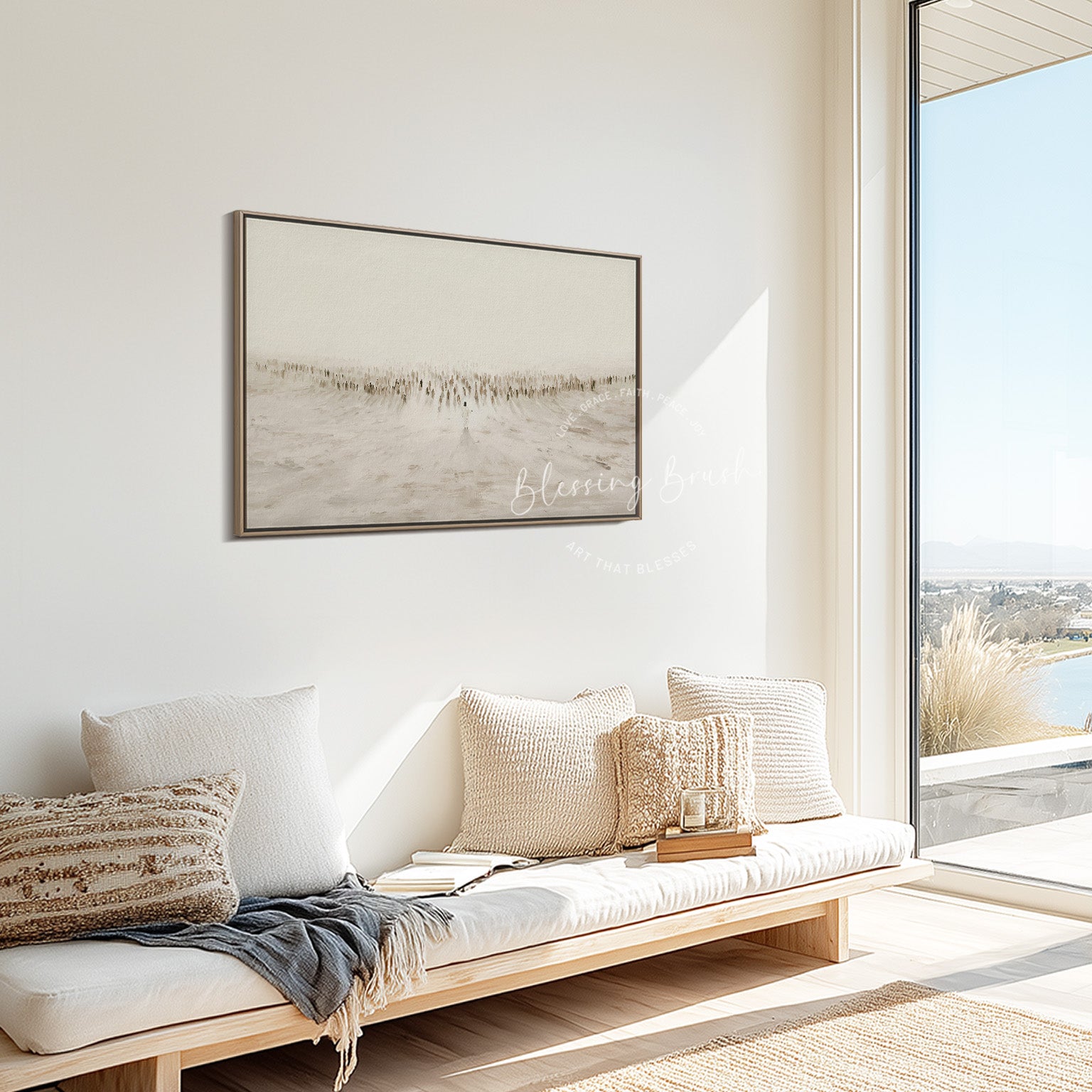 Jesus Teaching the Multitudes – Sermon on the Mount Large Framed Canvas – Minimalist Christian Art