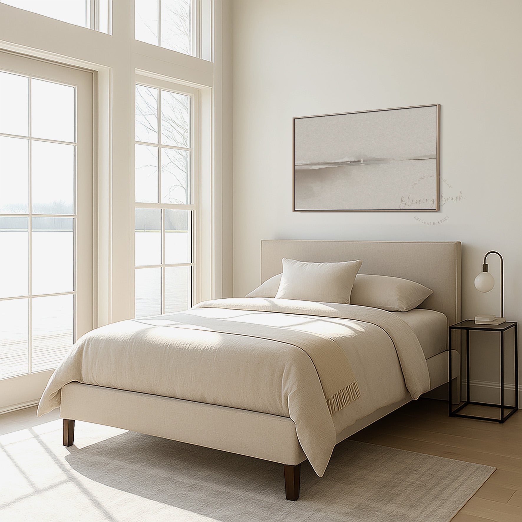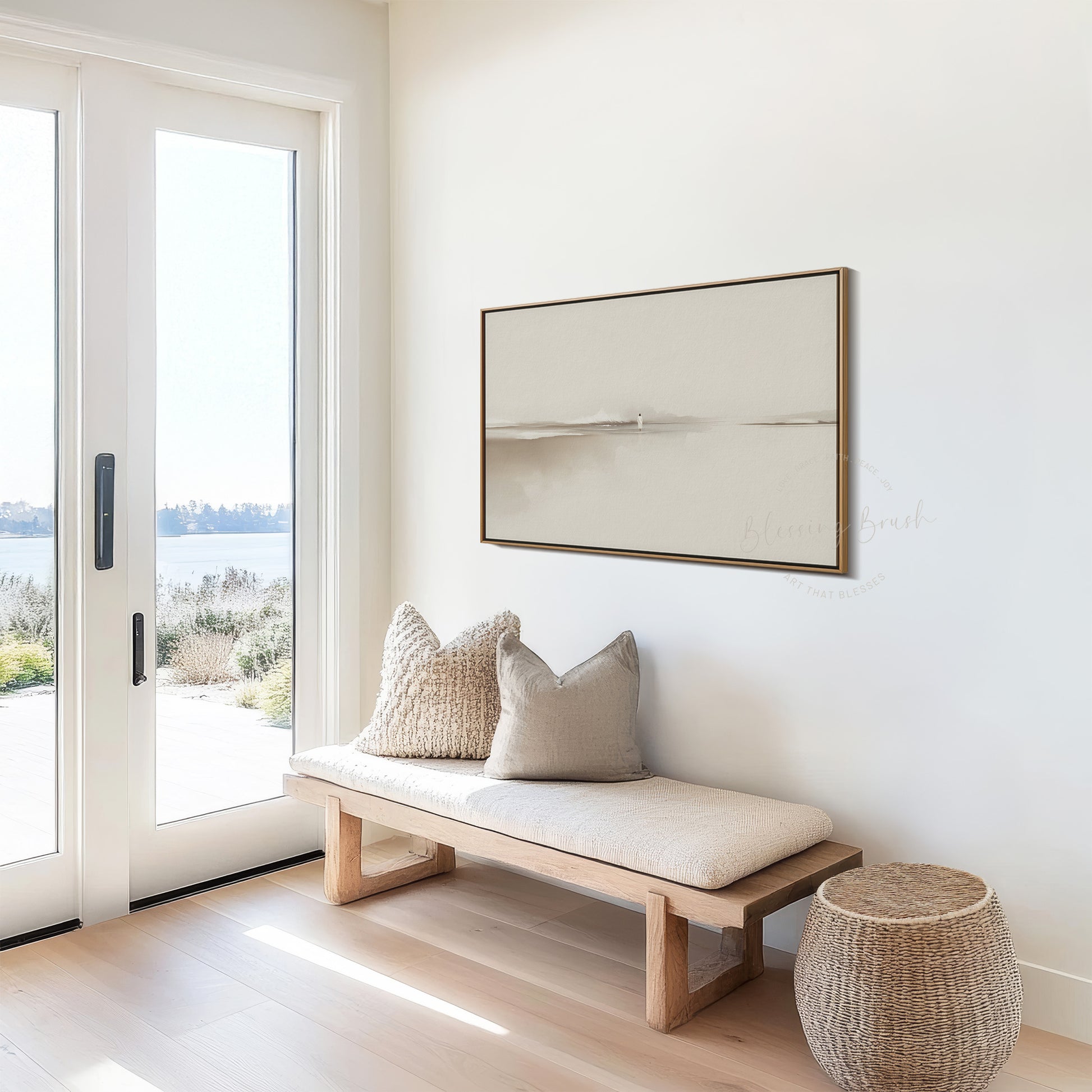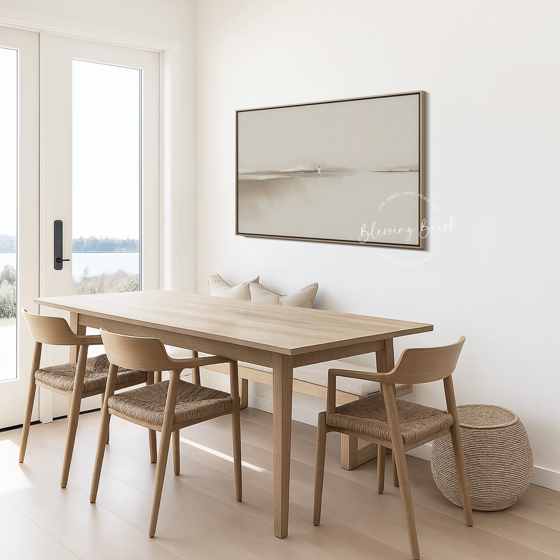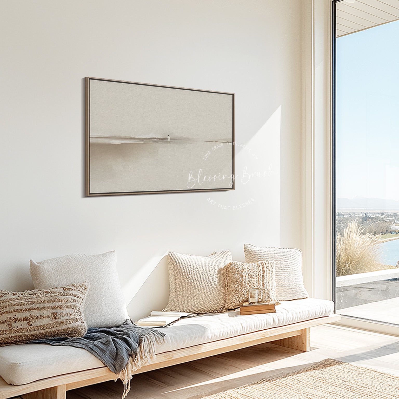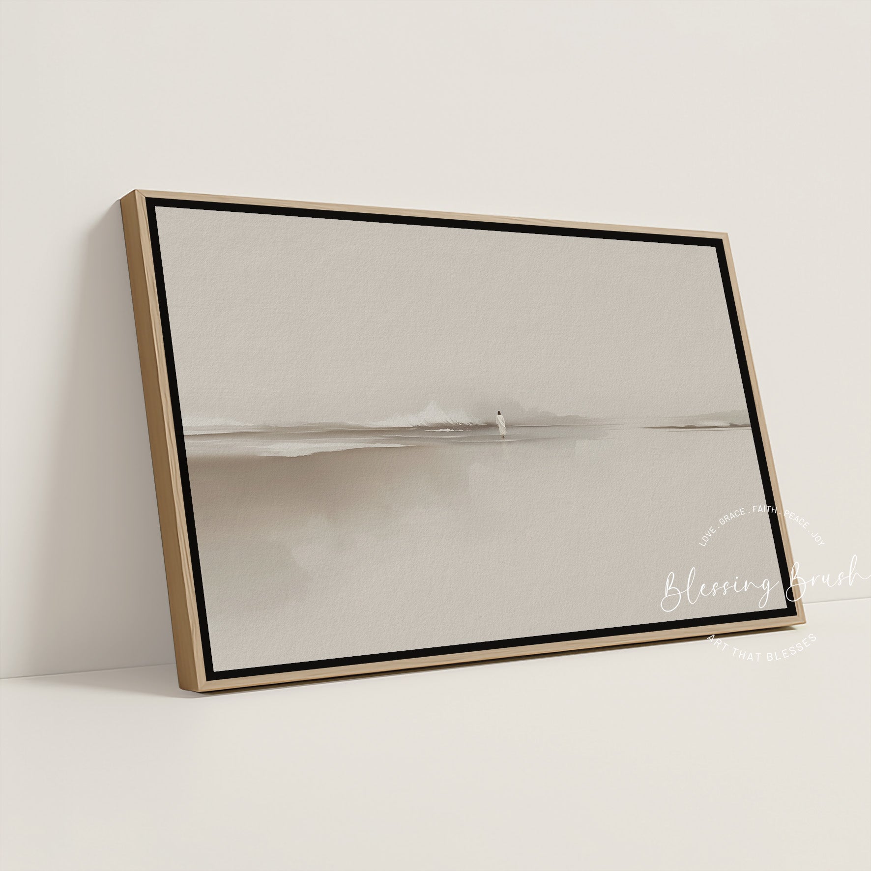 Walk by Faith – Jesus Walking on Water Framed Canvas, Minimalist Neutral Christian Wall Art | Blessing Brush